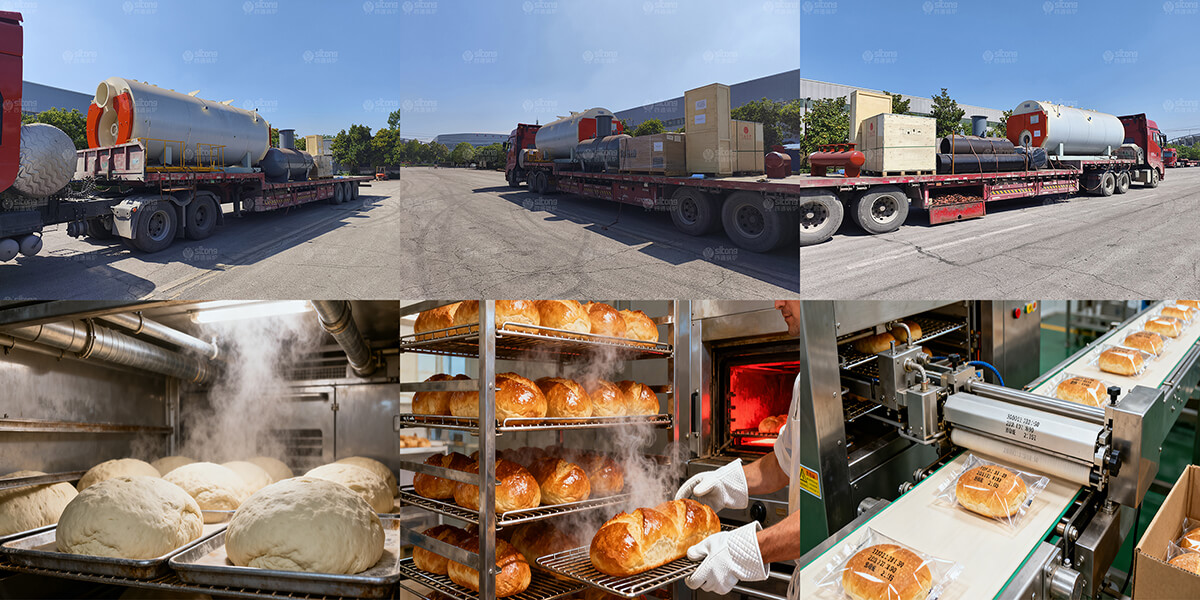 In recent years, the food industry in Kazakhstan has been showing a positive development trend. With the development of the food industry, the demand for steam boilers in the food production process gas also been increasing, such as for sterilization, drying, and heating. Steam Boilers play a crucial roal in ensuring the quality and production efficiency of food. This cooperation with Sitong Boiler is a bread production enterprise in Kazakhstan. In bread production, the awakening process is one of the most critical application scenarios for steam boilers, with the aim of providing a stable temperature and humidity environment for yeast fermentation. High humidity can prevent the dough surface from crusting and ensure a smooth surface of the finished product. The appropriate temperature can provide assurance for yeast activity and promote dough expansion to the target volume. In the baking process of bread, steam is introduced during the initial stage of baking, which is a key step in determining the taste and appearance of the bread. In addition, the steam provided by the steam boiler is also used for other auxiliary processes in bread production, such as raw material preheating, equipment cleaning, and final product packaging. Therefore, an efficient and stable steam boiler is crucial for a bread production enterprise.